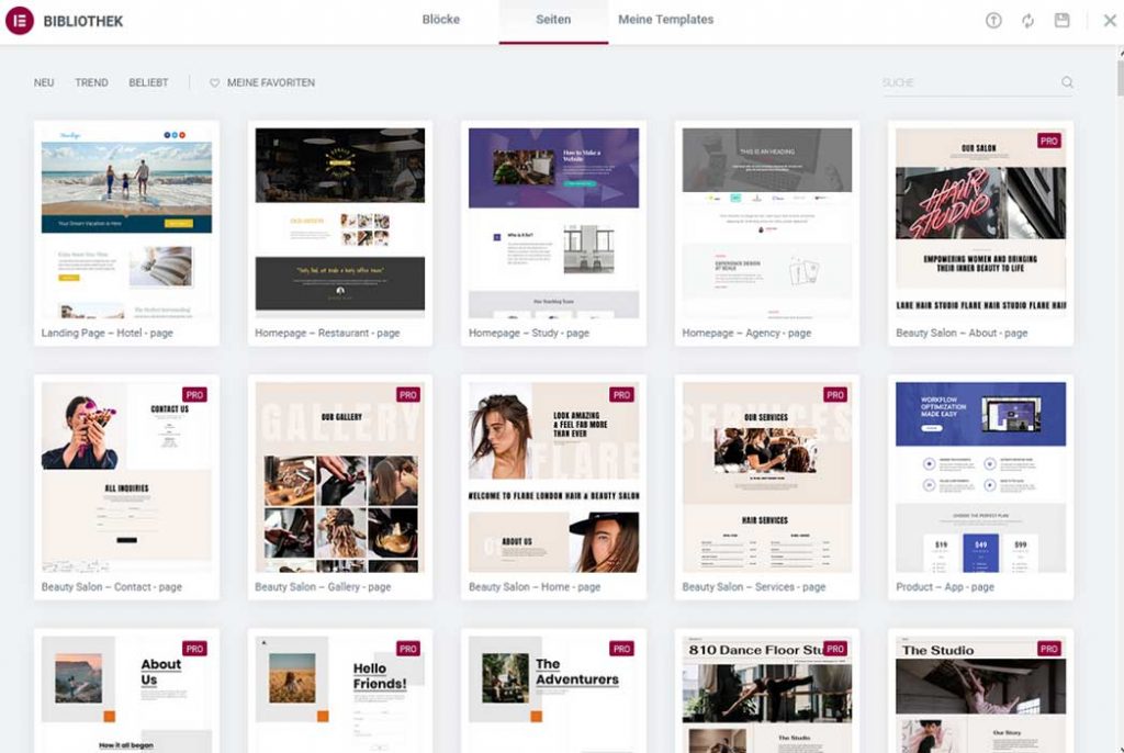 Wähle ein Template aus der Bibliothek aus und gestallte die Seite völlig frei nach deinen Wünschen